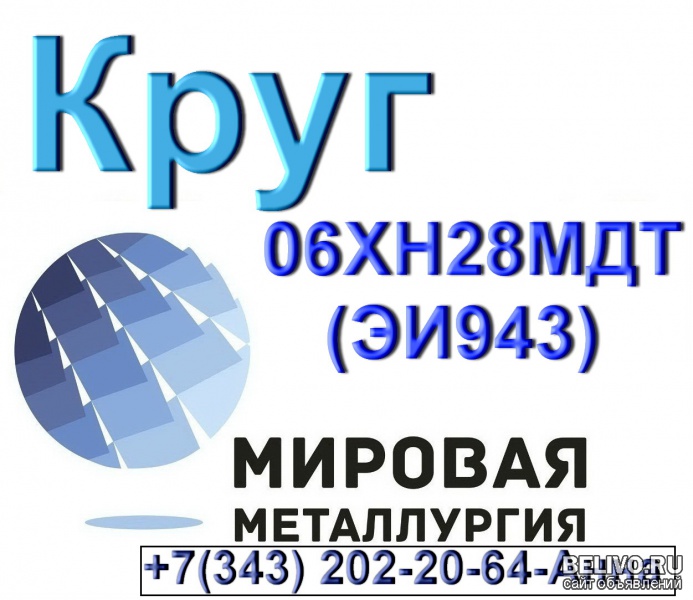 Предприятие ООО «Мировая Металлургия» предлагает приобрести круги стали 06ХН28МДТ. На наличии на крытом складе компании от ф10 мм до ф450 мм.