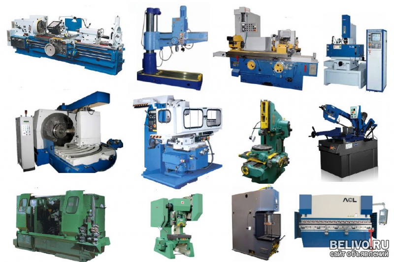 Станки: Сверлильные. Токарные. Фрезерные. Зубофрезерные и зубообрабатывающие, зубонарезные. Шлифовальные. Расточные. Автоматы, полуавтоматы. Долбежные, строгальные станки. Ножницы гильотинные. Трубогибы, гибочные станки. Кузнечно-прессовое оборудование. Прессы и машины листогибочные, листоправильные. Прессы КД, КЕ, КИ, КБ, КВ, П, ПБ, ПО,КА, ДЕ, ДГ кривошипные, гидравлические. Молоты ковочные.